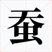 昆虫,有“家蚕”和“柞(zu?)蚕”,通常指“家蚕”,吃桑叶,吐丝做茧。丝可织绸缎。“柞蚕”吃柞树叶,丝可织茧绸:蚕丝。蚕茧。蚕食。蚕宝宝(蚕的爱称)。