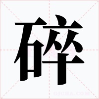 “碎” 字共有 13 画,拼音:suì,注音:ㄙㄨㄟˋ,部首:石,笔画数:13 画,字体结构:左右结构,五行:土,五笔:DYWF,Unicode编码:U+788E,郑码:GSOE,仓颉:MRYOJ,“碎”字笔顺为:一ノ丨フ一丶一ノ丶ノ丶一丨