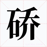 “硚” 字共有 11 画,拼音:qiáo,注音:ㄑㄧㄠˊ,部首:石,笔画数:11 画,字体结构:左右结构,五行:火,五笔:DTDJ,Unicode编码:U+785A,郑码:GMGN,仓颉:MRHKL,“硚”字笔顺为:一ノ丨フ一ノ一ノ丶ノ丨