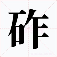 “砟” 字共有 10 画,拼音:zhǎ,注音:ㄓㄚˇ,部首:石,笔画数:10 画,字体结构:左右结构,五行:土,五笔:DTHF,Unicode编码:U+781F,郑码:GMID,仓颉:MROS,“砟”字笔顺为:一ノ丨フ一ノ一丨一一
