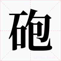 “砲” 字共有 10 画,拼音:pào,注音:ㄆㄠˋ,部首:石,笔画数:10 画,字体结构:左右结构,五行:水,五笔:DQNN,Unicode编码:U+7832,郑码:GRY,仓颉:MRPRU,“砲”字笔顺为:一ノ丨フ一ノフフ一フ