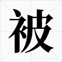 “被” 字共有 10 画,拼音:bèi,pī,注音:ㄅㄟˋ|ㄆㄧ,部首:衤,笔画数:10 画,字体结构:左右结构,五行:水,五笔:PUHC,Unicode编码:U+88AB,郑码:WTXI,仓颉:LDHE,“被”字笔顺为:丶フ丨ノ丶フノ丨フ丶