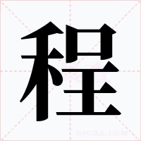 “程” 字共有 12 画,拼音:chéng,注音:ㄔㄥˊ,部首:禾,笔画数:12 画,字体结构:左右结构,五行:火,五笔:TKGG,Unicode编码:U+7A0B,郑码:MFJC,仓颉:HDRHG,“程”字笔顺为:ノ一丨ノ丶丨フ一一一丨一
