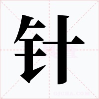 (会意。从金,从十。最初用的竹针,写作“箴”,后来有了金属的针,写作“鍼”(针)。本义:缝衣的用具)