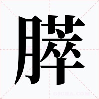 “膵” 字共有 15 画,拼音:cuì,注音:ㄘㄨㄟˋ,部首:月,笔画数:15 画,字体结构:左右结构,五行:火,五笔:EAYF,Unicode编码:U+81B5,郑码:QEOE,仓颉:BTYJ,“膵”字笔顺为:ノフ一一一丨丨丶一ノ丶ノ丶一丨