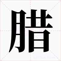 “腊” 字共有 12 画,拼音:là,xī,注音:ㄌㄚˋ|ㄒㄧ,部首:月,笔画数:12 画,字体结构:左右结构,五行:火,五笔:EAJG,Unicode编码:U+814A,郑码:QEK,仓颉:BTA,“腊”字笔顺为:ノフ一一一丨丨一丨フ一一