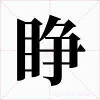 “睁” 字共有 11 画,拼音:zhēng,注音:ㄓㄥ,部首:目,笔画数:11 画,字体结构:左右结构,五行:金,五笔:HQVH,Unicode编码:U+7741,郑码:LRXB,仓颉:BUNSD,“睁”字笔顺为:丨フ一一一ノフフ一一丨