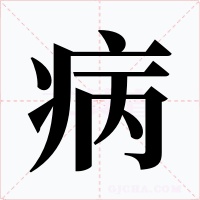 又如:病笃(病势沉重);病疽(毒疮类疾病);病困(受疾病的困扰);病革(病势危急将死);病亟(病革)