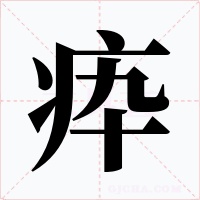 “疩” 字共有 9 画,拼音:cuì,注音:ㄘㄨㄟˋ,部首:疒,笔画数:9 画,字体结构:左上包围结构,五行:火,五笔:UVFK,Unicode编码:U+75A9,郑码:TQED,仓颉:KKNJ,“疩”字笔顺为:丶一ノ丶一ノフ一丨