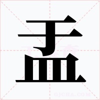 “盂” 字共有 8 画,拼音:yú,注音:ㄩˊ,部首:皿,笔画数:8 画,字体结构:上下结构,五行:土,五笔:GFLF,Unicode编码:U+76C2,郑码:ADLK,仓颉:MDBT,“盂”字笔顺为:一一丨丨フ丨丨一