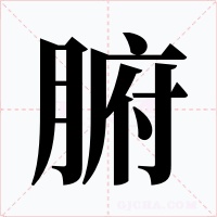 “腑” 字共有 12 画,拼音:fǔ,注音:ㄈㄨˇ,部首:月,笔画数:12 画,字体结构:左右结构,五行:水,五笔:EYWF,Unicode编码:U+8151,郑码:QTND,仓颉:BIOI,“腑”字笔顺为:ノフ一一丶一ノノ丨一丨丶