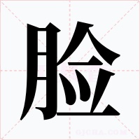 (形声。从肉,佥(qiān)声。古代表示人的整个面部用“面”。“脸”字在魏晋时期才出现,只表示两颊的上部,到了唐宋时期,口语中才用“脸”表示整个面部。本义:两颊的上部)