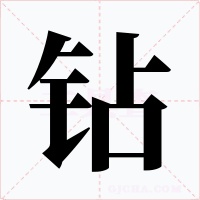 (形声。从金,赞(占)声。古时“钻”、“鑽”是两个字。“钻”本是镊子,又作刑具。现在是“鑽”的简化字。本义:穿孔)