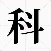 “科” 字共有 9 画,拼音:kē,注音:ㄎㄜ,部首:禾,笔画数:9 画,字体结构:左右结构,五行:木,五笔:TUFH,Unicode编码:U+79D1,郑码:MFTE,仓颉:HDYJ,“科”字笔顺为:ノ一丨ノ丶丶丶一丨