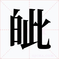 “皉” 字共有 11 画,拼音:cǐ,注音:ㄘˇ,部首:白,笔画数:11 画,字体结构:左右结构,五行:火,五笔:RHXN,Unicode编码:U+7689,郑码:NKIR,仓颉:HAYMP,“皉”字笔顺为:ノ丨フ一一丨一丨一ノフ