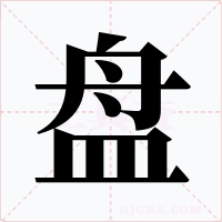 回旋,回绕,屈曲:盘旋。盘桓。盘剥(辗转剥削)。盘曲。盘亘。盘郁(曲折幽深)。盘根错节。