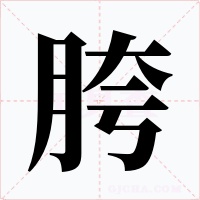 又如:胯子(腰的两侧和大腿之间的部分);胯夫(指韩信。汉淮阴侯韩信早年未得志时,,有人欺侮他,让他从胯下爬了过去)。又指衣服掩蔽股胫的部分。如:胯衫(古时宦者之服)