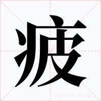(形声。从疒,皮声。病字旁念chuáng,据甲骨文,象人躺在床上害病的样子。以它作形旁的字一般与疾病有关。本义:疲乏;困倦)