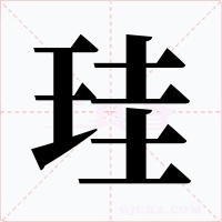 “珪” 字共有 10 画,拼音:guī,注音:ㄍㄨㄟ,部首:王,笔画数:10 画,字体结构:左右结构,五行:木,五笔:GFFG,Unicode编码:U+73EA,郑码:CBB,仓颉:MGGG,“珪”字笔顺为:一一丨一一丨一一丨一