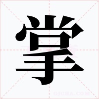 又如:掌上(手掌之上。极言容易);掌上观纹(比喻极其容易,毫不费力);掌文(手掌纹路所呈现的近乎文字的形状)