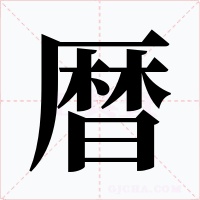 “暦” 字共有 14 画,拼音:lì,注音:ㄌㄧˋ,部首:日,笔画数:14 画,字体结构:左上包围结构,五行:火,五笔:DSSJ,Unicode编码:U+66A6,郑码:GGFK,仓颉:MDDA,“暦”字笔顺为:一ノ一丨ノ丶一丨ノ丶丨フ一一