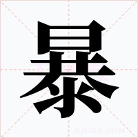 强大而突然来的,又猛又急的:暴雷。暴病。暴动。暴力。暴涨。暴发。风暴。暴风骤雨(亦喻声势浩大、发展迅猛的群众运动)。
