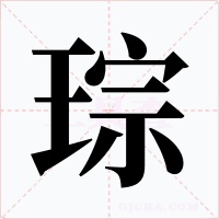 (形声。从玉,宗声。本义:瑞玉)同本义〖rectangularjadewithroundholes〗