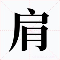 又如:肩巴(肩膀);肩甲(即肩胛);肩磨(肩膀耸动,浑身发抖);肩排(并肩排列;并排)