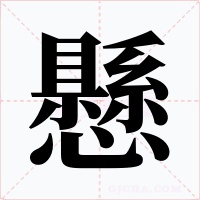 “懸” 字共有 20 画,拼音:xuán,注音:ㄒㄩㄢˊ,部首:心,笔画数:20 画,字体结构:上下结构,五行:金,五笔:HITN,Unicode编码:U+61F8,郑码:LCZW,仓颉:BFP,“懸”字笔顺为:丨フ一一一一丨ノ丶ノフフ丶丨ノ丶丶フ丶丶