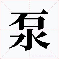 “泵” 字共有 9 画,拼音:bèng,注音:ㄅㄥˋ,部首:水,笔画数:9 画,字体结构:上下结构,五行:水,五笔:DIU,Unicode编码:U+6CF5,郑码:GKV,仓颉:MRE,“泵”字笔顺为:一ノ丨フ一丨フノ丶