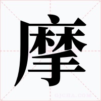 擦,蹭,接触:摩擦。摩天。摩崖(山崖上刻的文字、佛像等)。摩肩接踵。摩顶放踵。