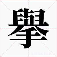 “擧” 字共有 17 画,拼音:jǔ,注音:ㄐㄩˇ,部首:手,笔画数:17 画,字体结构:上下结构,五行:火,五笔:WFGR,Unicode编码:U+64E7,郑码:NBOM,仓颉:HCQ,“擧”字笔顺为:ノ丨一一一フ丨フ一一一ノ丶ノ一一丨