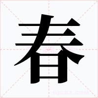 (会意。甲骨文字形,从草(木),草木春时生长;中间是“屯”字,似草木破土而出,土上臃肿部分,即刚破土的胚芽形,表示春季万木生长;“屯”亦兼作声符。小篆字形,隶变以后,除“日”之外,其他部分都看不出来了。本义:春。四季的第一季)