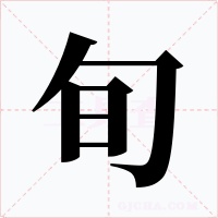 (会意。从勹(bāo)日。甲骨文,上为交叉记号,表示由此开始,后来引长内曲,表示回环周遍。金文又加“日”。本义:十日。古代天干纪日,每十日周而复始,称一旬)