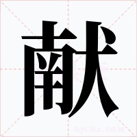 (会意。从犬,鬳(yàn)声。“犬”代表进献之物。本义:献祭)