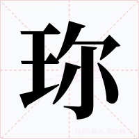 “珎” 字共有 9 画,拼音:zhēn,注音:ㄓㄣ,部首:王,笔画数:9 画,字体结构:左右结构,五行:金,五笔:GQIY,Unicode编码:U+73CE,郑码:CRKO,仓颉:MGNF,“珎”字笔顺为:一一丨一ノフ丨ノ丶