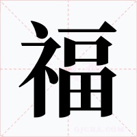 (形声。从示,“畐”声。声符亦兼表字义。“畐”,本象形,是“腹”字的初文,上象人首,“田”象腹部之形。腹中的“十”符,表示充满之义,则“畐”有腹满义。“福”“富”互训,以明家富则有福。本义:福气,福运。与“祸”相对)