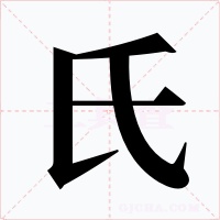 氏,姓氏。——《玉篇》。按,秦汉以前,“姓”和“氏”不同,“姓”为“氏”之本,“氏”自“姓”出。夏、商、周三代,氏是姓的支系,用以区别子孙之所由出生