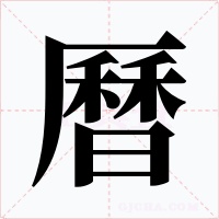 “曆” 字共有 16 画,拼音:lì,注音:ㄌㄧˋ,部首:日,笔画数:16 画,字体结构:左上包围结构,五行:火,五笔:DTTJ,Unicode编码:U+66C6,郑码:GGMK,仓颉:MHDA,“曆”字笔顺为:一ノノ一丨ノ丶ノ一丨ノ丶丨フ一一