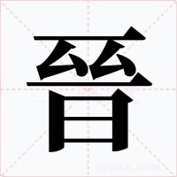 “晉” 字共有 10 画,拼音:jìn,注音:ㄐㄧㄣˋ,部首:日,笔画数:10 画,字体结构:上下结构,五行:火,五笔:GCCJ,Unicode编码:U+6649,郑码:BDZK,仓颉:MIIA,“晉”字笔顺为:一フ丶フ丶一丨フ一一