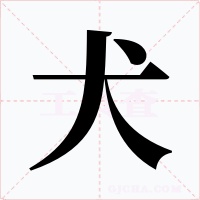 “犬” 字共有 4 画,拼音:quǎn,注音:ㄑㄩㄢˇ,部首:犬,笔画数:4 画,字体结构:独体字,五行:木,五笔:DGTY,Unicode编码:U+72AC,郑码:GDS,仓颉:IK,“犬”字笔顺为:一ノ丶丶