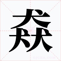 “猋” 字共有 12 画,拼音:biāo,注音:ㄅㄧㄠ,部首:犬,笔画数:12 画,字体结构:上下结构,五行:水,五笔:DDDU,Unicode编码:U+730B,郑码:GDGS,仓颉:IKIKK,“猋”字笔顺为:一ノ丶丶一ノ丶丶一ノ丶丶