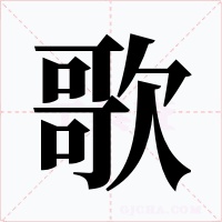 “歌” 字共有 14 画,拼音:gē,注音:ㄍㄜ,部首:欠,笔画数:14 画,字体结构:左右结构,五行:木,五笔:SKSW,Unicode编码:U+6B4C,郑码:AIJR,仓颉:MRNO,“歌”字笔顺为:一丨フ一丨一丨フ一丨ノフノ丶