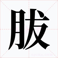 “胈” 字共有 9 画,拼音:bá,注音:ㄅㄚˊ,部首:月,笔画数:9 画,字体结构:左右结构,五行:水,五笔:EDCY,Unicode编码:U+80C8,郑码:QGXS,仓颉:BIKE,“胈”字笔顺为:ノフ一一一ノフ丶丶