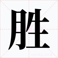 “胜” 字共有 9 画,拼音:shèng,注音:ㄕㄥˋ,部首:月,笔画数:9 画,字体结构:左右结构,五行:金,五笔:ETGG,Unicode编码:U+80DC,郑码:QMC,仓颉:BHQM,“胜”字笔顺为:ノフ一一ノ一一丨一