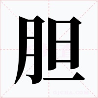 “胆” 字共有 9 画,拼音:dǎn,注音:ㄉㄢˇ,部首:月,笔画数:9 画,字体结构:左右结构,五行:火,五笔:EJGG,Unicode编码:U+80C6,郑码:QKA,仓颉:BAM,“胆”字笔顺为:ノフ一一丨フ一一一
