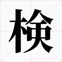 “検” 字共有 12 画,拼音:jiǎn,注音:ㄐㄧㄢˇ,部首:木,笔画数:12 画,字体结构:左右结构,五行:木,五笔:SWGW,Unicode编码:U+691C,郑码:FOJO,仓颉:DOMO,“検”字笔顺为:一丨ノ丶ノ丶一丨フ一ノ丶