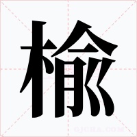 “楡” 字共有 13 画,拼音:yú,注音:ㄩˊ,部首:木,笔画数:13 画,字体结构:左右结构,五行:木,五笔:SWGB,Unicode编码:U+6961,郑码:FOQZ,仓颉:DOMV,“楡”字笔顺为:一丨ノ丶ノ丶一丨フ一一フフ