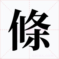 “條” 字共有 10 画,拼音:tiáo,注音:ㄊㄧㄠˊ|ㄊㄧㄠ,部首:木,笔画数:10 画,字体结构:左右结构,五行:木,五笔:WHTS,Unicode编码:U+689D,郑码:NIRF,仓颉:OLHD,“條”字笔顺为:ノ丨丨ノフ丶一丨ノ丶