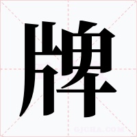 “牌” 字共有 12 画,拼音:pái,注音:ㄆㄞˊ,部首:片,笔画数:12 画,字体结构:左右结构,五行:水,五笔:THGF,Unicode编码:U+724C,郑码:NXNE,仓颉:LLHWJ,“牌”字笔顺为:ノ丨一フノ丨フ一一ノ一丨